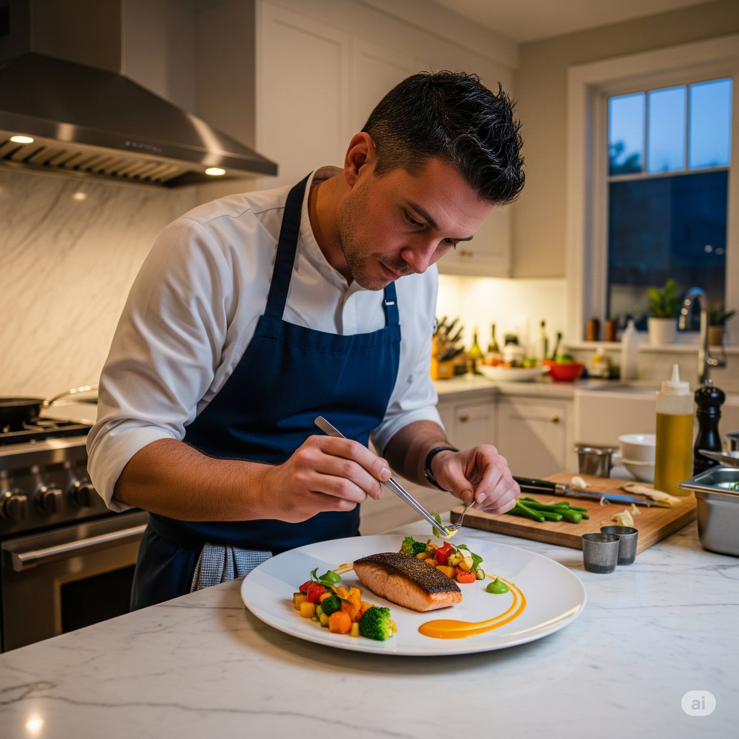 Chef profesional que cocina en vivo en tu casa